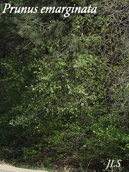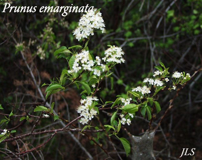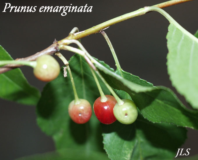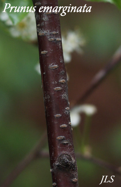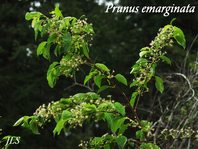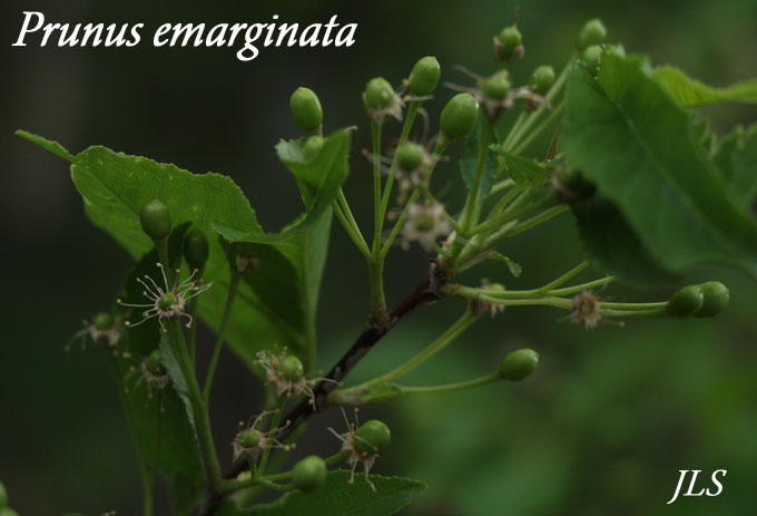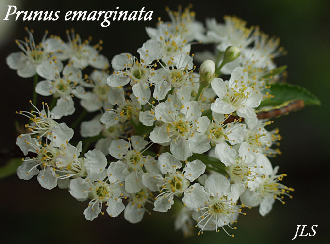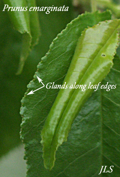 These grow as slender small trees in the ravine in Lower Magnolia. They must have been brought in from the northwest, where they are indigenous. Glands at the leaf base, on the petiole, visible with a microscope, confirm the identification. In spring, these small trees are quite showy with their white blossoms.