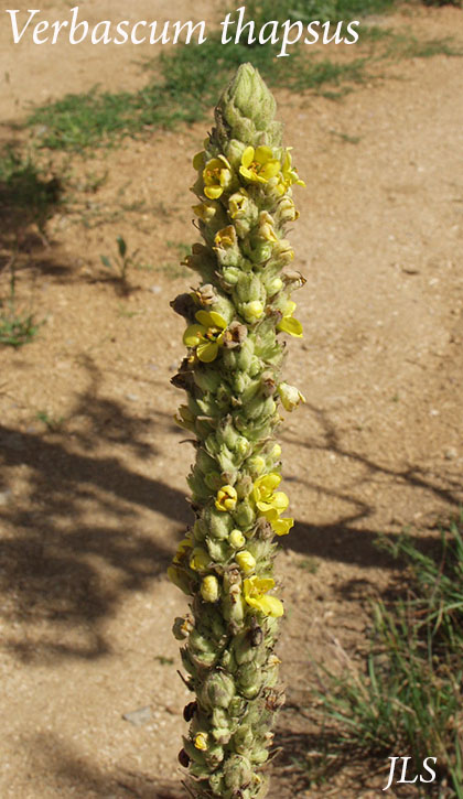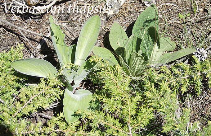 I have included this photo because it shows the difference between the Mullein, on the right, and the Green Gentian (Frasiera speciosa) on the left. It would be easy to pull a Gentian by mistake, so look for the diagnostic smooth leaves, as opposed to the wooly leaves on the Mullein.