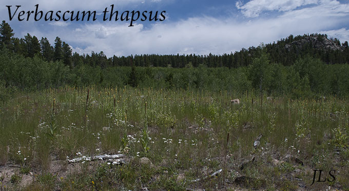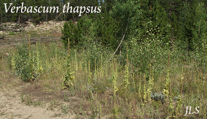 This photo was taken on the Boy Scout Trail. It was part of the Winiger Ridge Project, and the USFS, which does not bother with Verbascum thapsus, has left a mess.