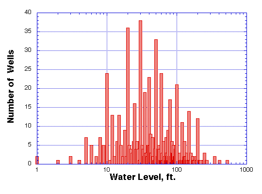 of over 900 feet and well-water levels of over 400 feet have been encountered