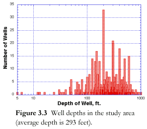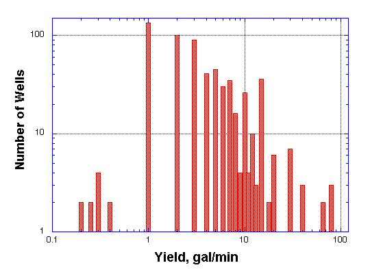 well-water levels averaged 62.3 feet and well yields averaged 6.24 gpm. Depths