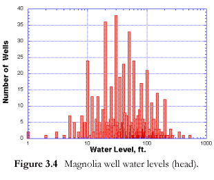 2-3 percent of wells come up dry. Histograms display the distribution of well