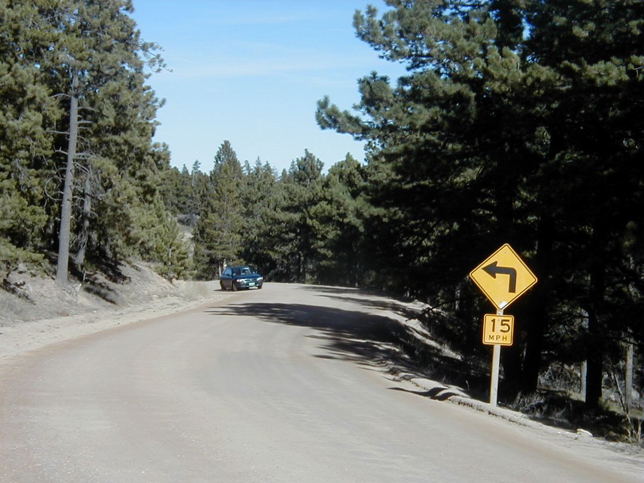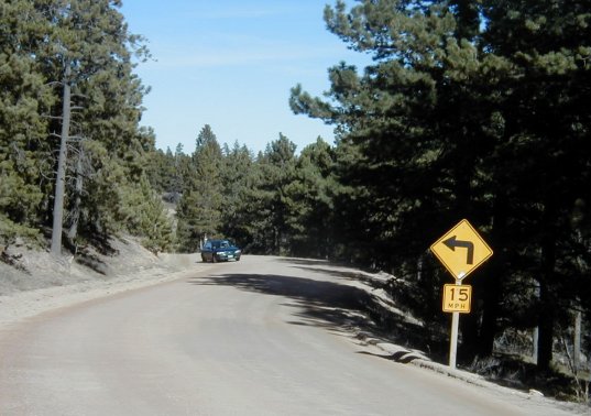 Notably, 39% of accidents occurred at the junction of the Peak-to-Peak Highway and Magnolia Road. CSP data does not detail whether these drivers were entering or leaving Magnolia Road, but it is evident that this intersection needs great care and attention from all drivers. Only two other specific locations warrant special attention. Eleven accidents (10%) occurred at "Dead Man's Curve", well known and, incidentally, well marked with a warning for 15 mph (Figure 9.3). The next most common location was at Mile 5, a slight curve near Twin Sisters intersection (8%).