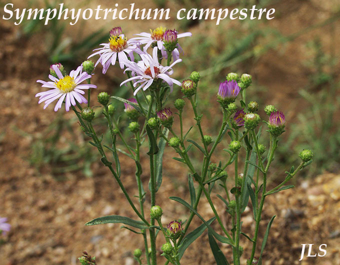 Symphyotrichum campestre has recently been reclassified from Aster, where it was named Aster campestre.At this time, there is only one very high altitude Aster, Aster alpinus, in North America, all the others being Eurasian plants. For more information, go to Wikipedia and Burke Herbarium.