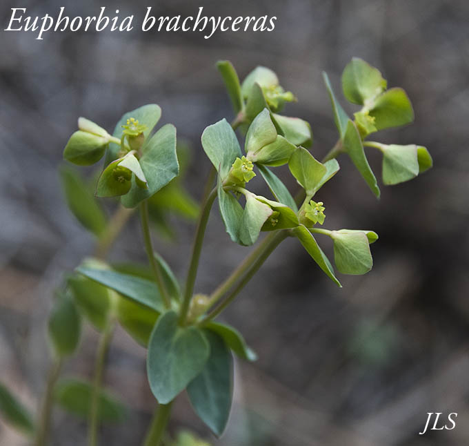 Please compare these little plants with the noxious Leafy Spurge in the Non-native Flowers section.This native plant does not form the aggressive communities formed by Euphorbia tithymalensis. Euphorbia brachycera is the preferred synonym. Wikipedia and Southwest Colorado Wildflowers have more information.