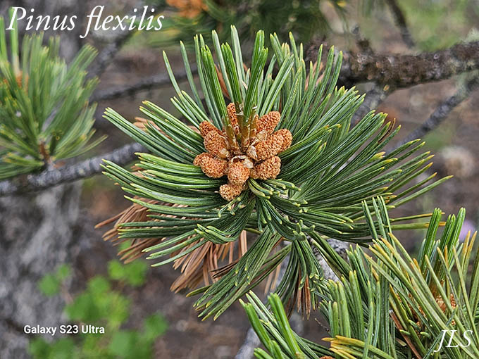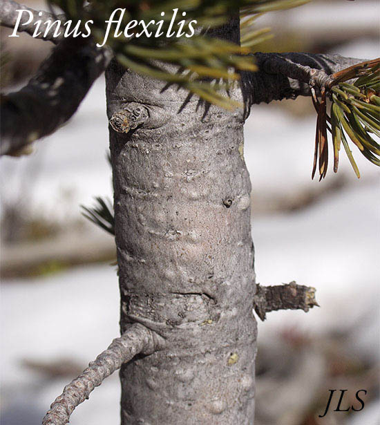 Pinus flexilus is not common in our woods, but there are more of them than I originally thought, sparsely intersperced among the other conifers. Few individuals I have seen are large; most are very young plants. In some parts of North America they are afflicted with White Pine Blister Rust, a fungus for which the alternate host is Ribes, or Gooseberry. The Limbers in the Caribou area have been hit hard by beetles. Wikipedia, USDA, and Southwest Colorado Wildflowers have more information.